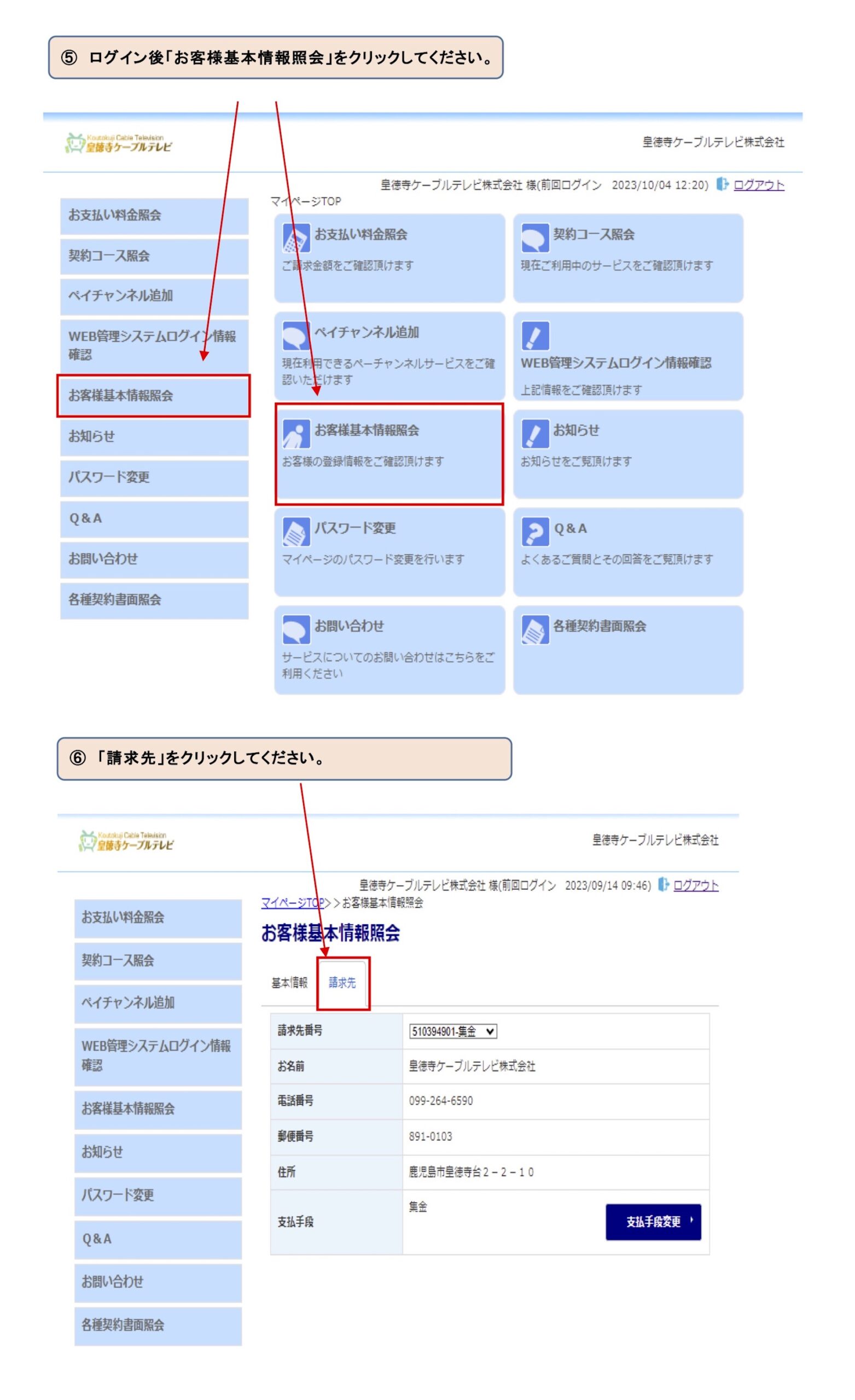 セルフページログイン